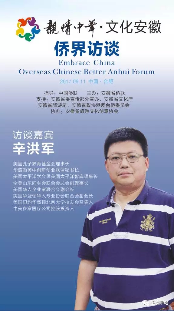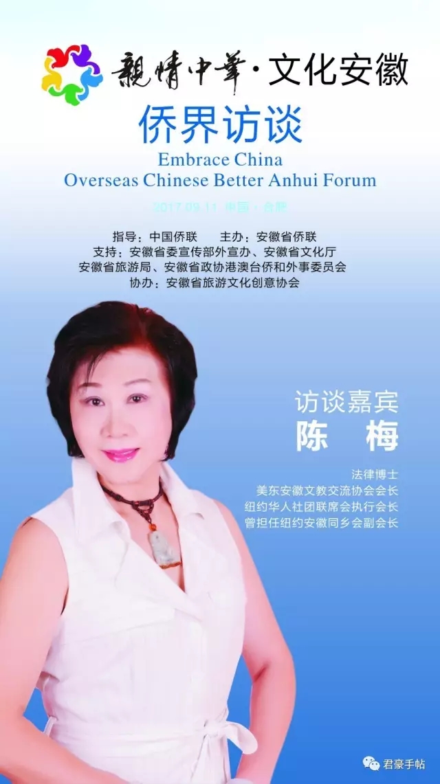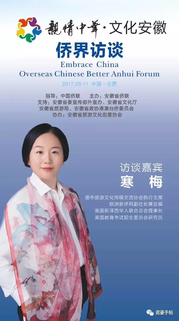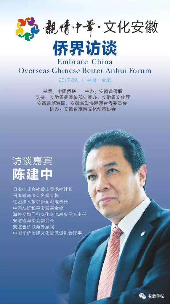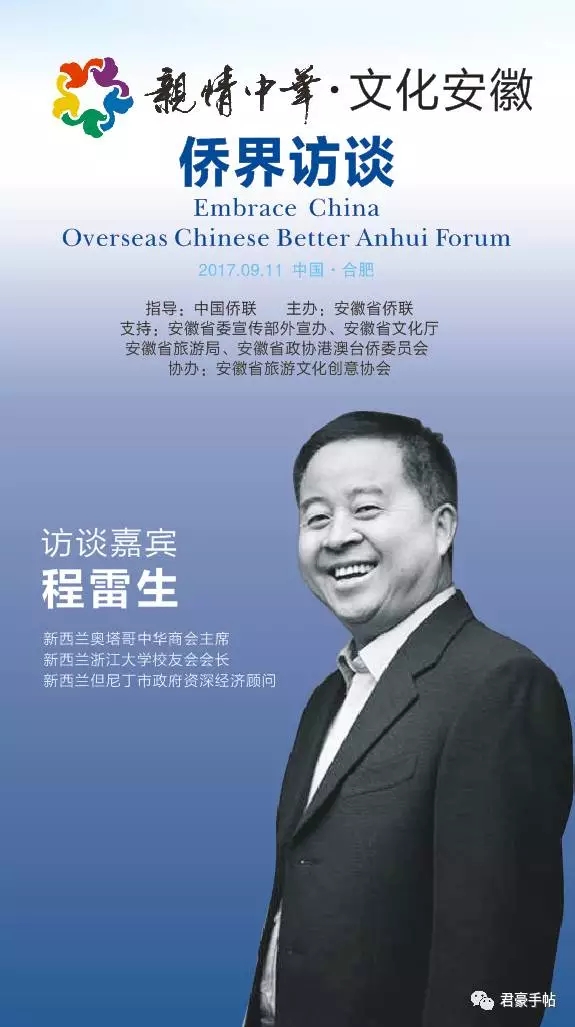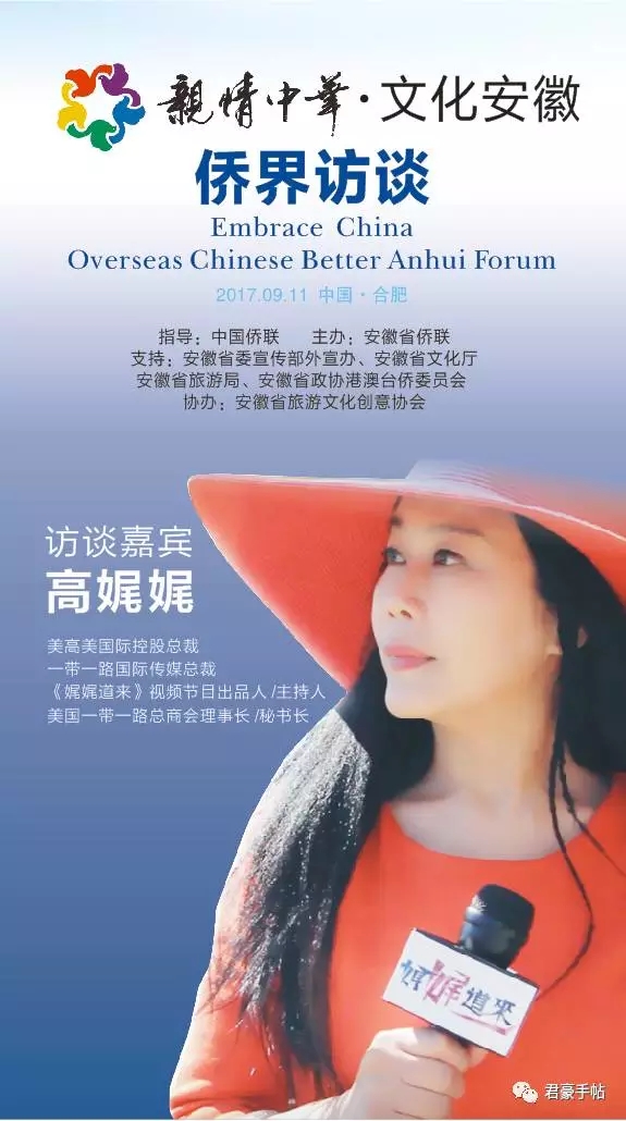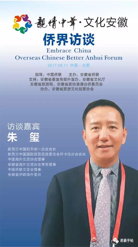 “亲情中华•文化安徽 侨界访谈”活动由中国侨联指导,安徽省侨联主办,安徽省委宣传部外宣办、安徽省文化厅、安徽省旅游局、安徽省政协港澳台侨和外事委员会支持,安徽省旅游文化创意协会协办。