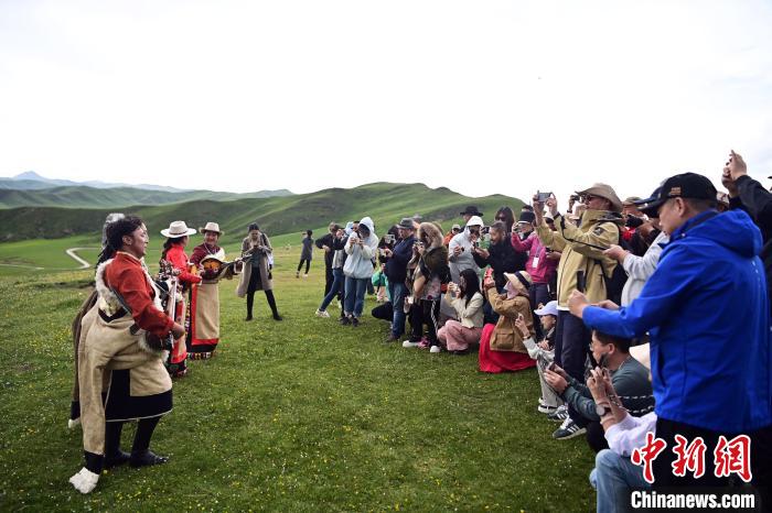 随后,海外华媒采访团一行走访了黄河上游水源涵养区阿万仓湿地,在广袤的草原上聆听藏族民歌弹唱和格萨尔说唱,感受绚丽多彩的民族文化。